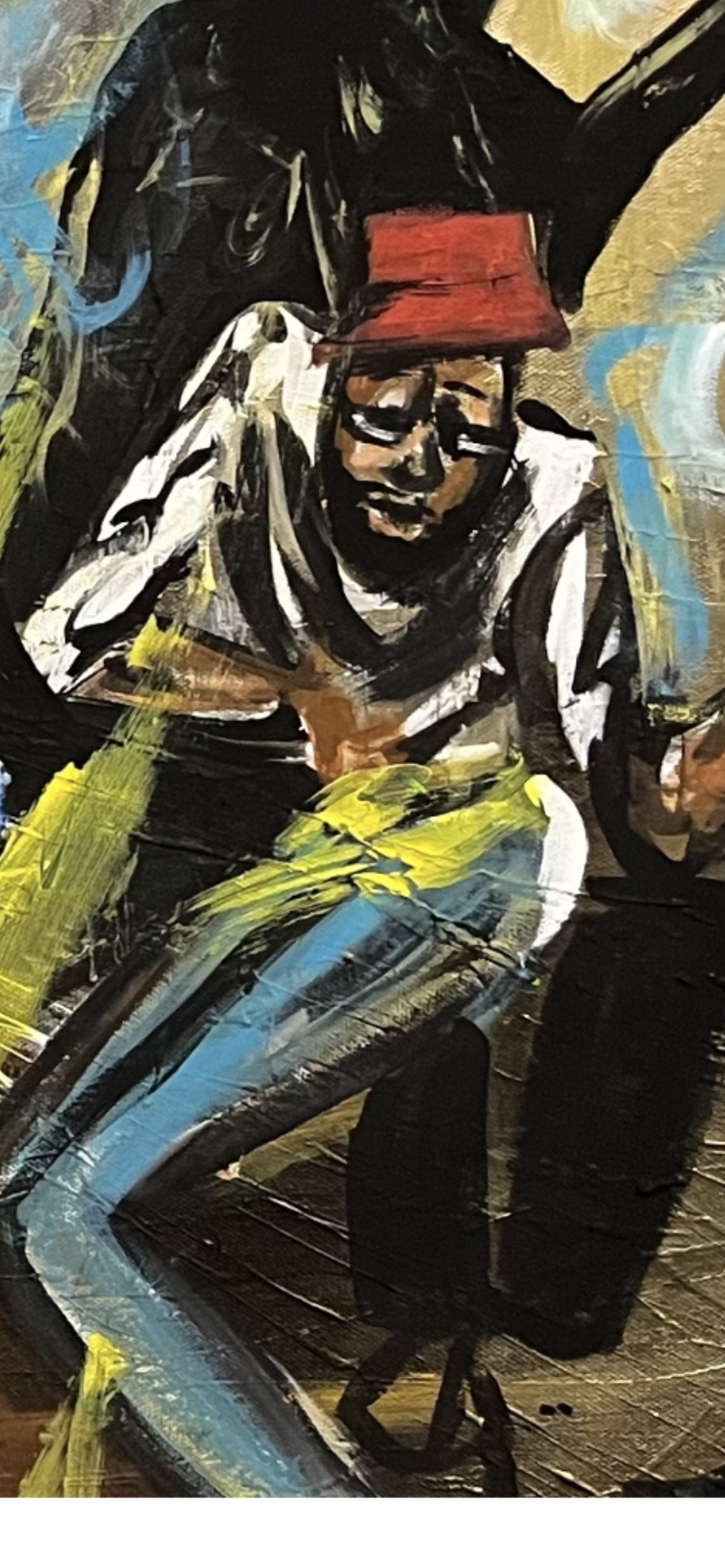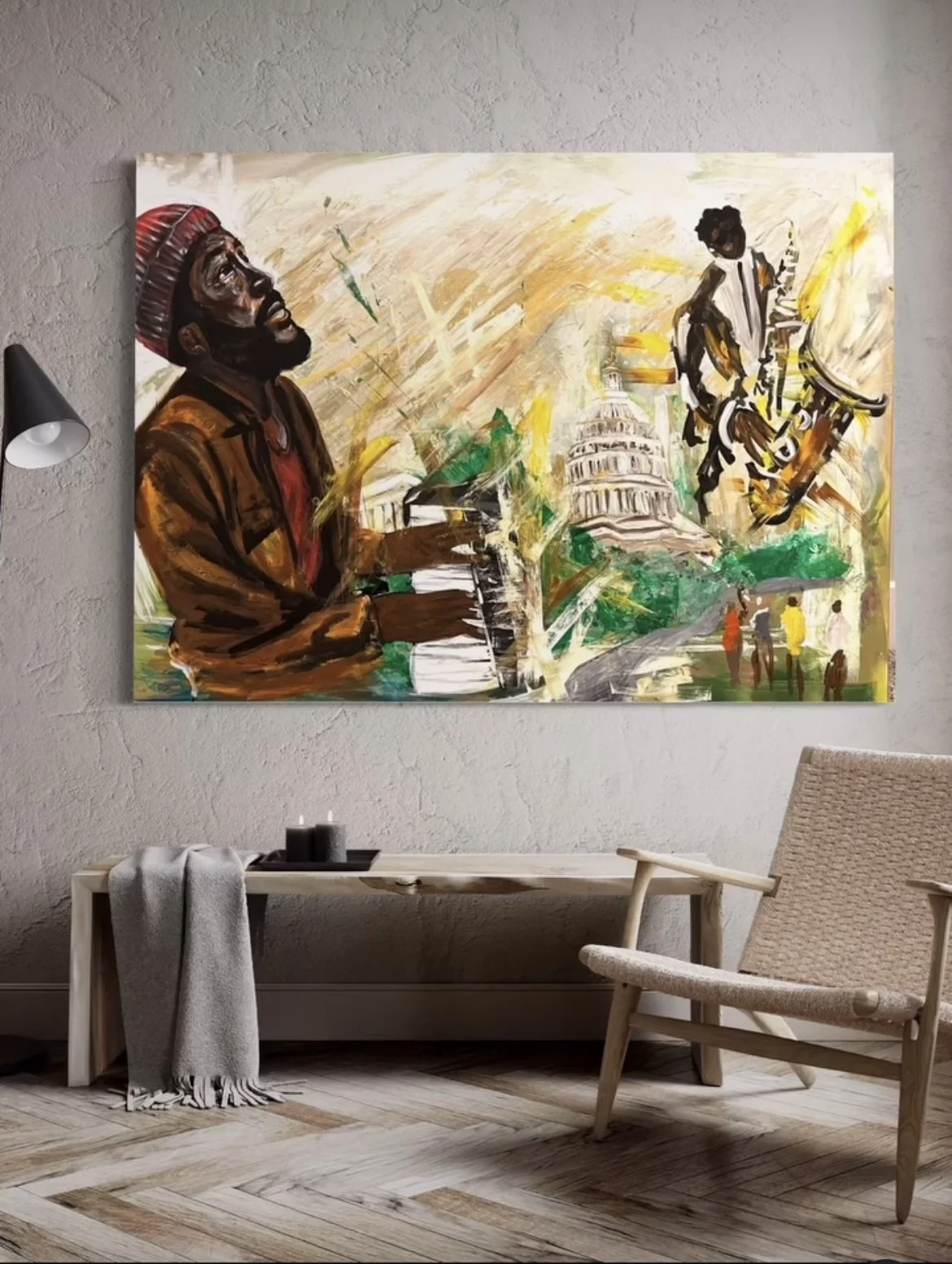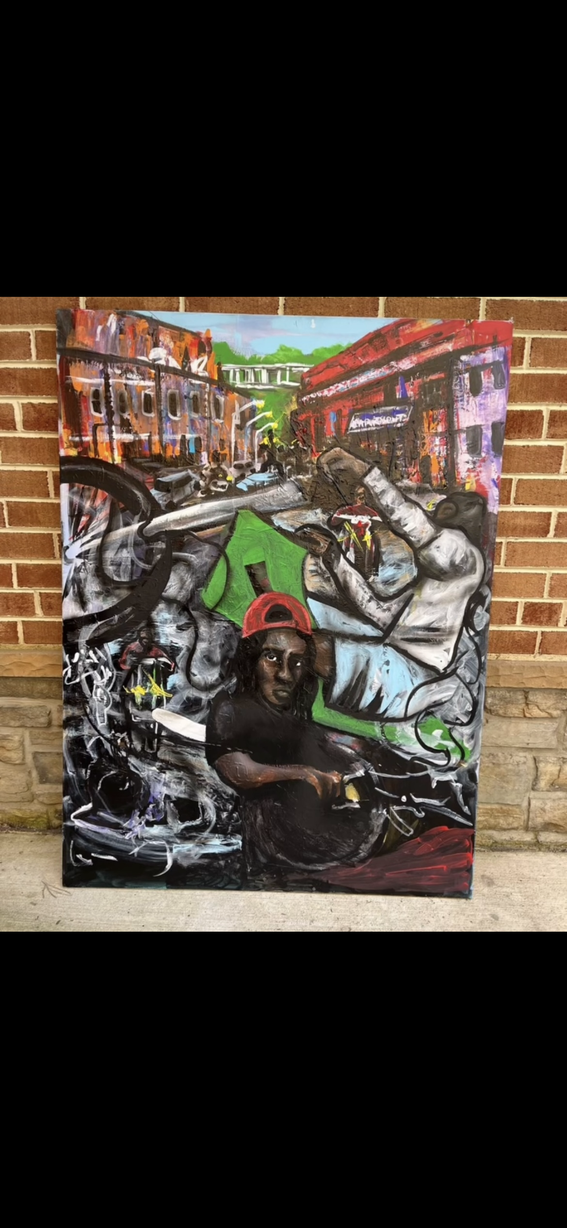 Lunden Blake is a contemporary artist whose work bridges fine art sophistication with the pulse of urban culture. A Maryland native, Blake draws deeply from the spirit of the Washington, D.C. metropolitan area, weaving influences from hip hop, DC Go-Go music, and community life into bold, expressive works that command attention.